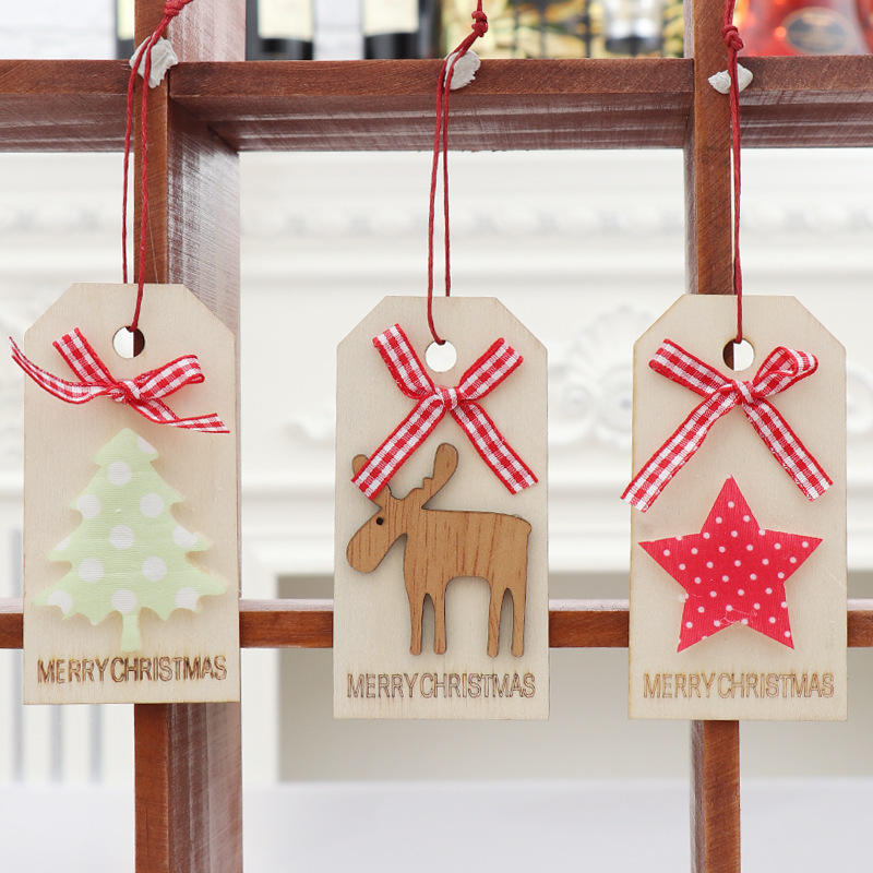 New Christmas Decorations Christmas Wooden Small Pendants Christmas Tree Pendant Bowknot Deer Wooden Listing Pendant Ornaments