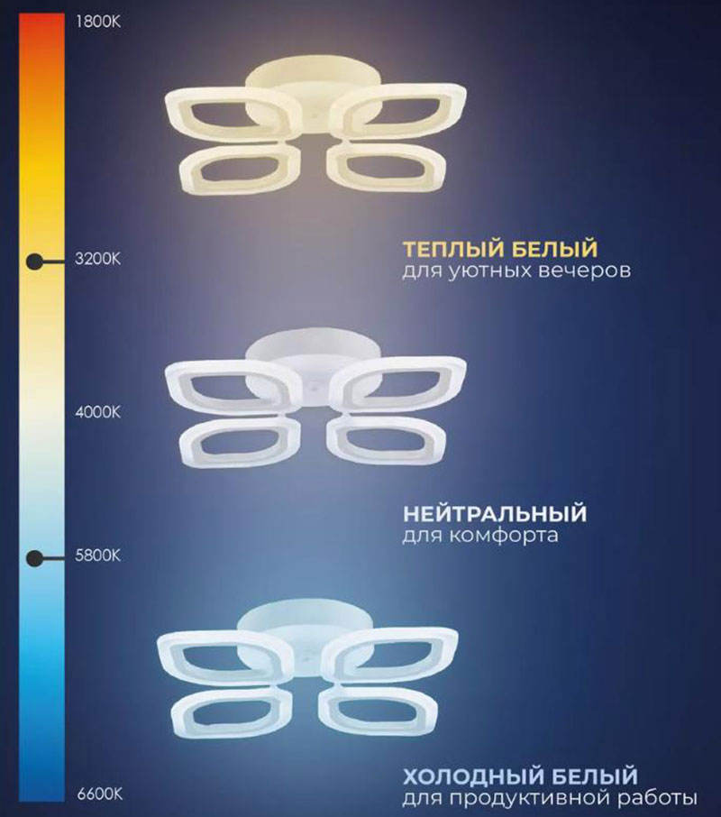 2700K (Soft Warm White), 3500K (Warm White), 4100K (Neutral White), 5000K (Daylight), 6000K (Daylight Alert)