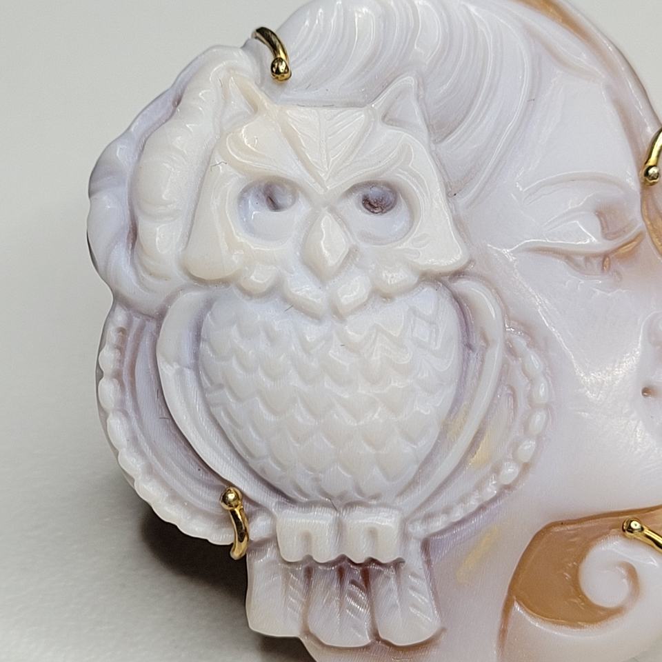 New Classic Hand Carved Sardonix Natural Shell Gemstone Loose Lady Owl Design Oval Cut Grade AA 40mm Brown/White