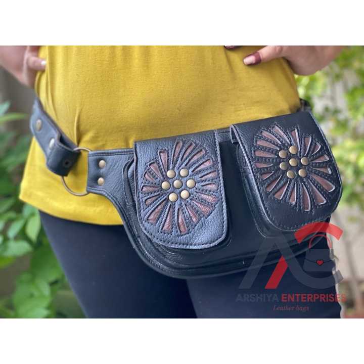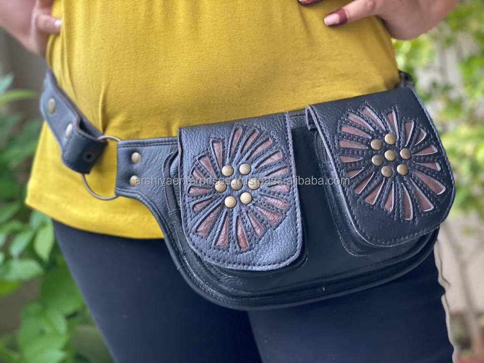 New Classic Handmade Real Genuine Leather Waist Bag with Adjustable Belt Unique Western Festival Fanny Pack Hip Waist Thigh Bags