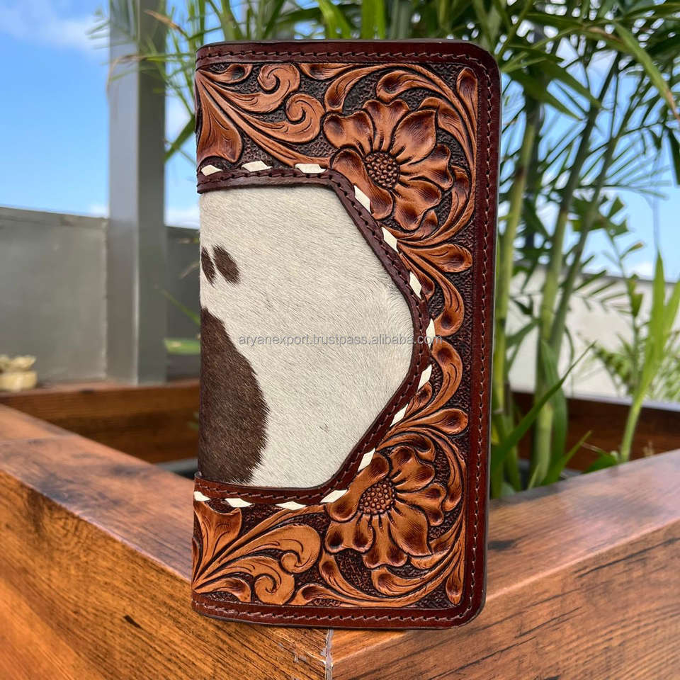 Hand Tooled Cowhide Leather Men's Long Bifold Wallet