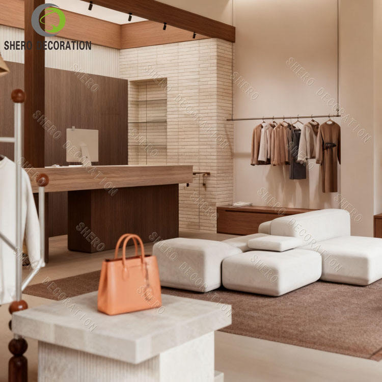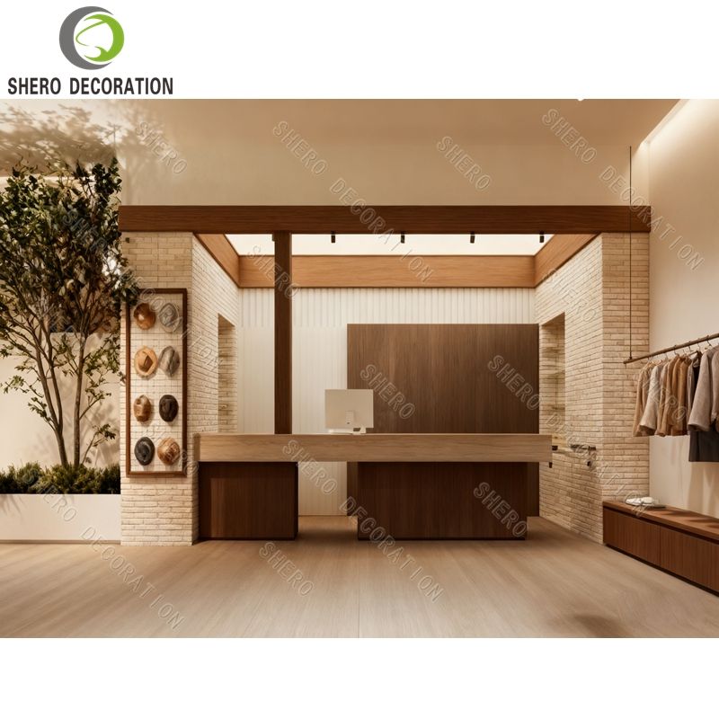 New Clothing Shop Interior Design Wood Shop Counter Customized Wall Mounted Clothing Display Rack Clothing Store Furniture