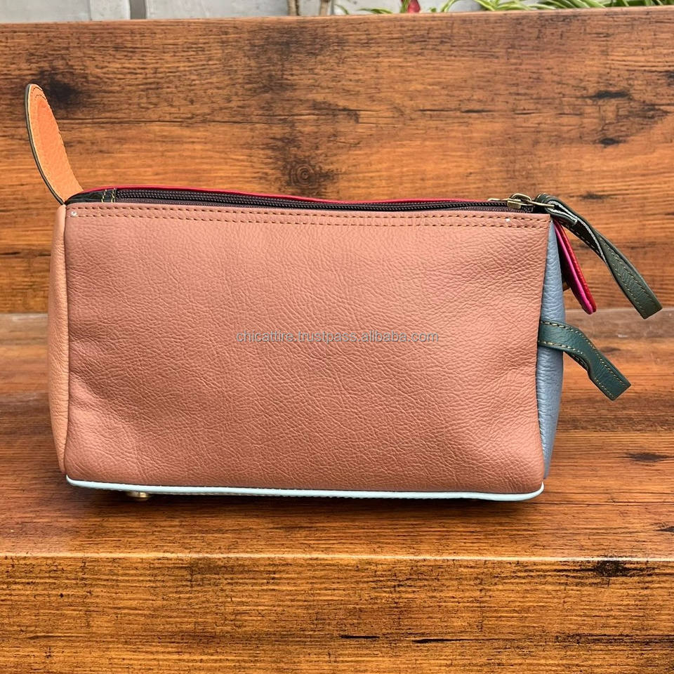 New Collection Custom Luxury Recycled Leather Makeup Bag Luxury New Vibrant Designer Cosmetic Travel Pouch with Handle