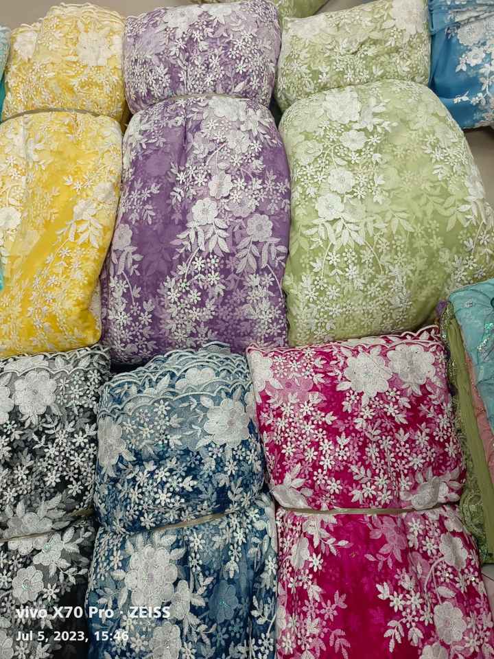 New Collection Embroidery Thread Work Net Fabric for Womens Clothing Woven Pattern Design Ideal for Weddings