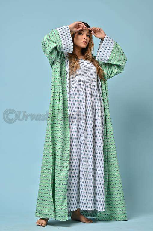 New Collection Exclusive Women Abaya Dress With Scarf Latest 2 Layered Block Printed Abaya Dress in High Quality 100% Cotton