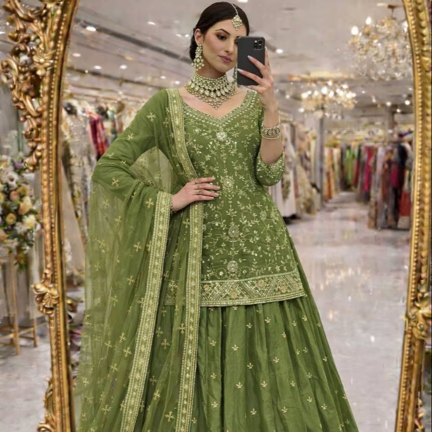 New Collection Fully Stitched Pure soft silk Top-Lehenga and Dupatta Set for Party Occasions