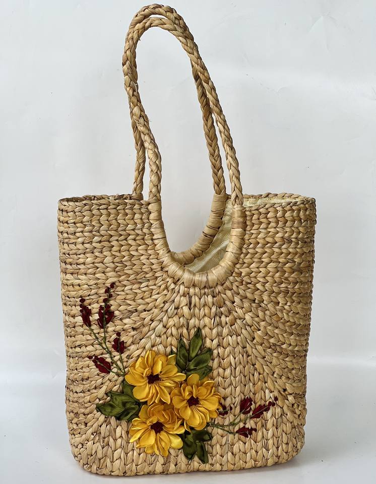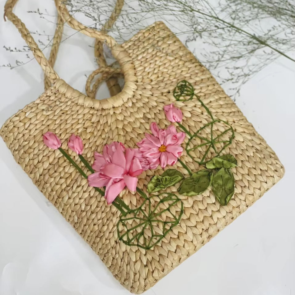 Stylish Open Top Clutch Two Shoulder Straps Eco-Friendly Vintage-Style Water Hyacinth Handbag New Collection 1-1.9L Capacity