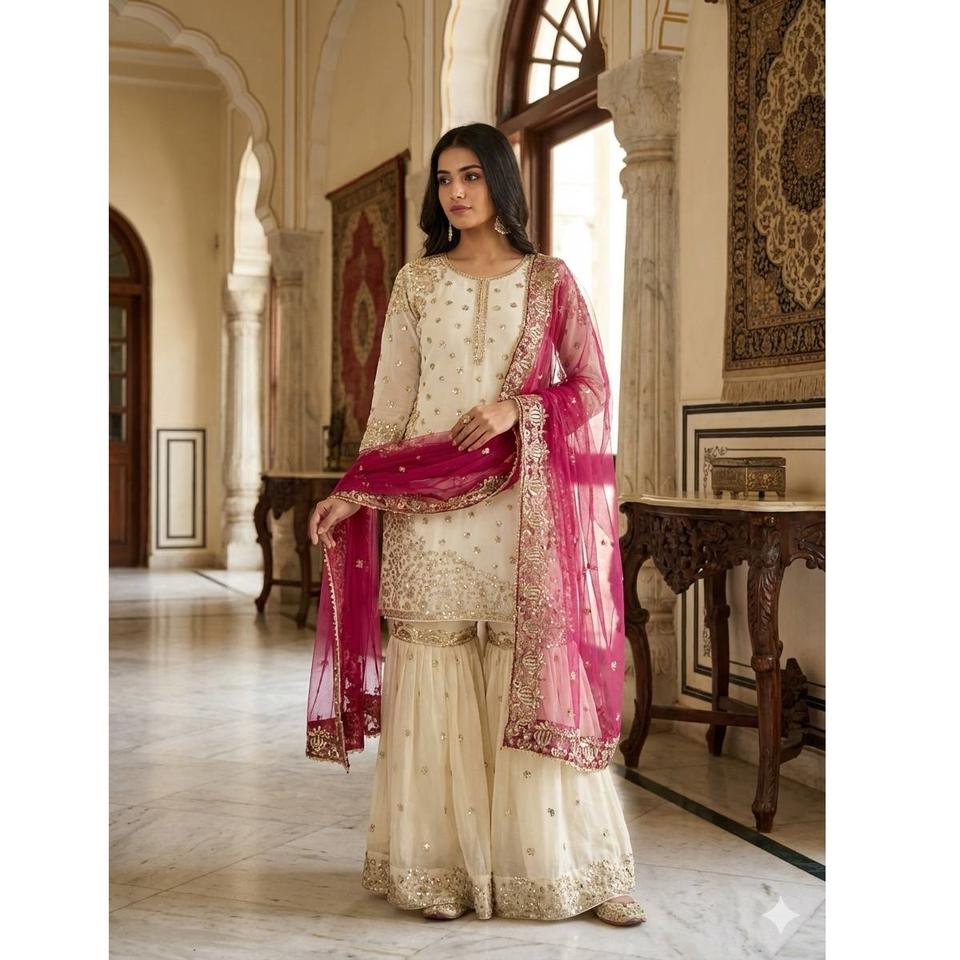 New Collection In Pure Fendy Silk With Heavy Embroidery Sequence Work Top Bottom And Dupatta Set Fully Stitched Ready to Wear