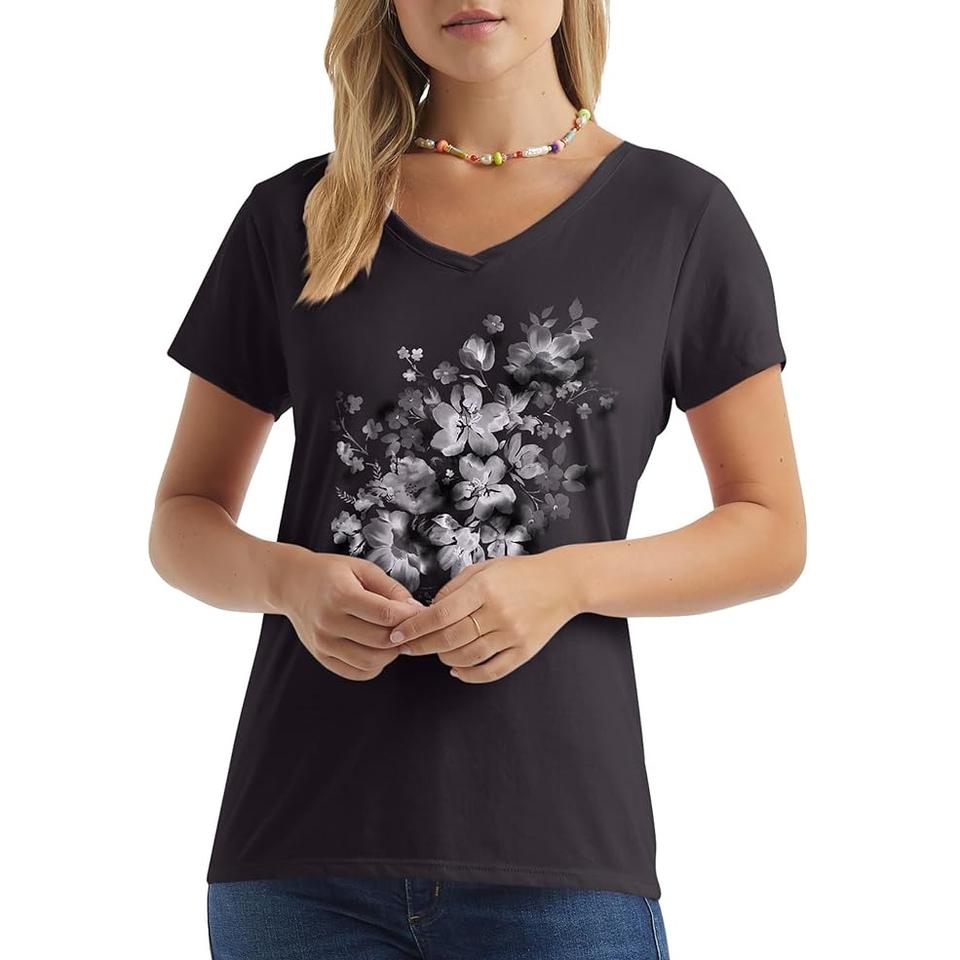 New Collection OEM Service Eco-Friendly Digital Printed Women's 100% Cotton Short Sleeve V-Neck Breathable Quick Dry T-shirt