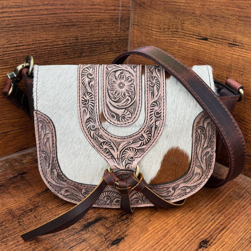 New Collection Real Cowhide Fur Hand Tooled Leather Sling Bag Carving Bohemian Bags Hot Selling Bags for Women's Use