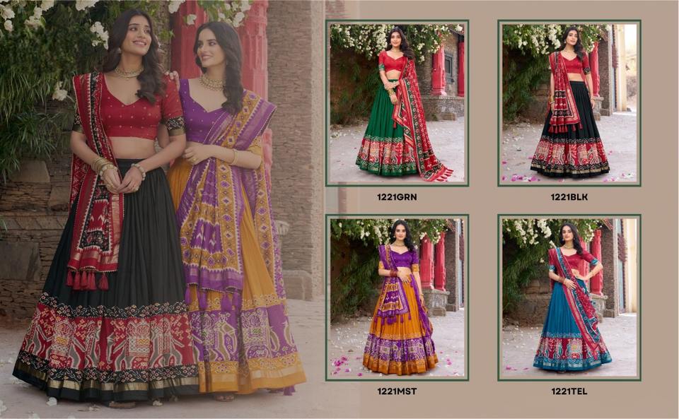 New Collection Silk Lehenga Choli With Patola Printed and Foil Work Rajasthani Lehenga Choli for Export Sale