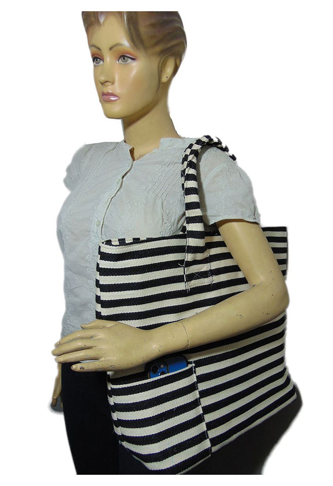 Product Name:jacquard Stripe Pattern Canvas Beach bag