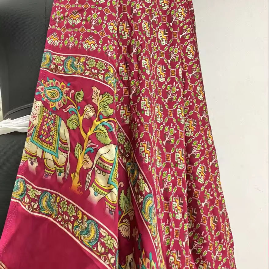 New Collocation Pure Modal Satin Fabric Printed Duppatta Lace Collection Fashion Women Wear Lehenga Types Dupatta Multicolor