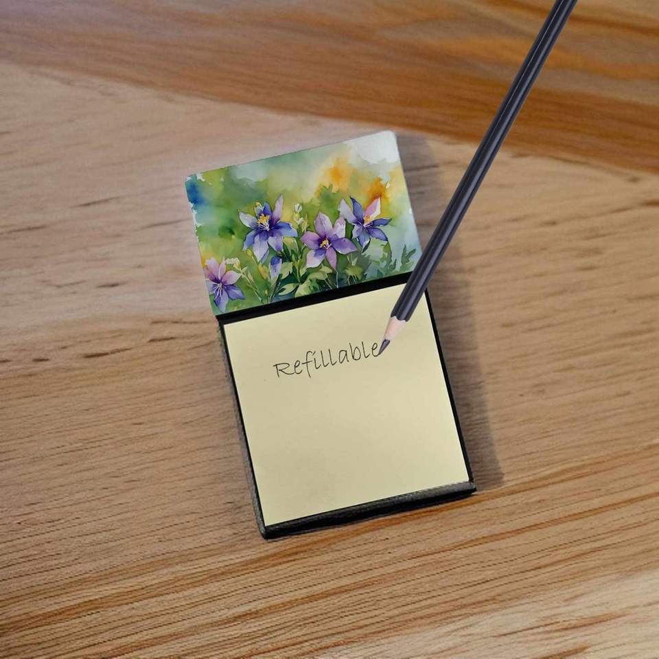 New Colorado Rocky Mountain Columbine Watercolor Self-Sticky Note Pads Dispenser Memo Pads Card Note Holder Accessory for Desks