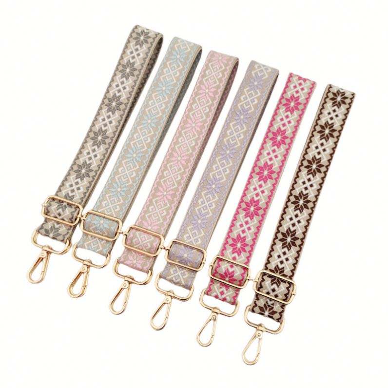 New Colorful Ethnic Style Jacquard Women's Wide Accessories Bag Shoulder Crossbody Thickened Burden Reduction Long Strap
