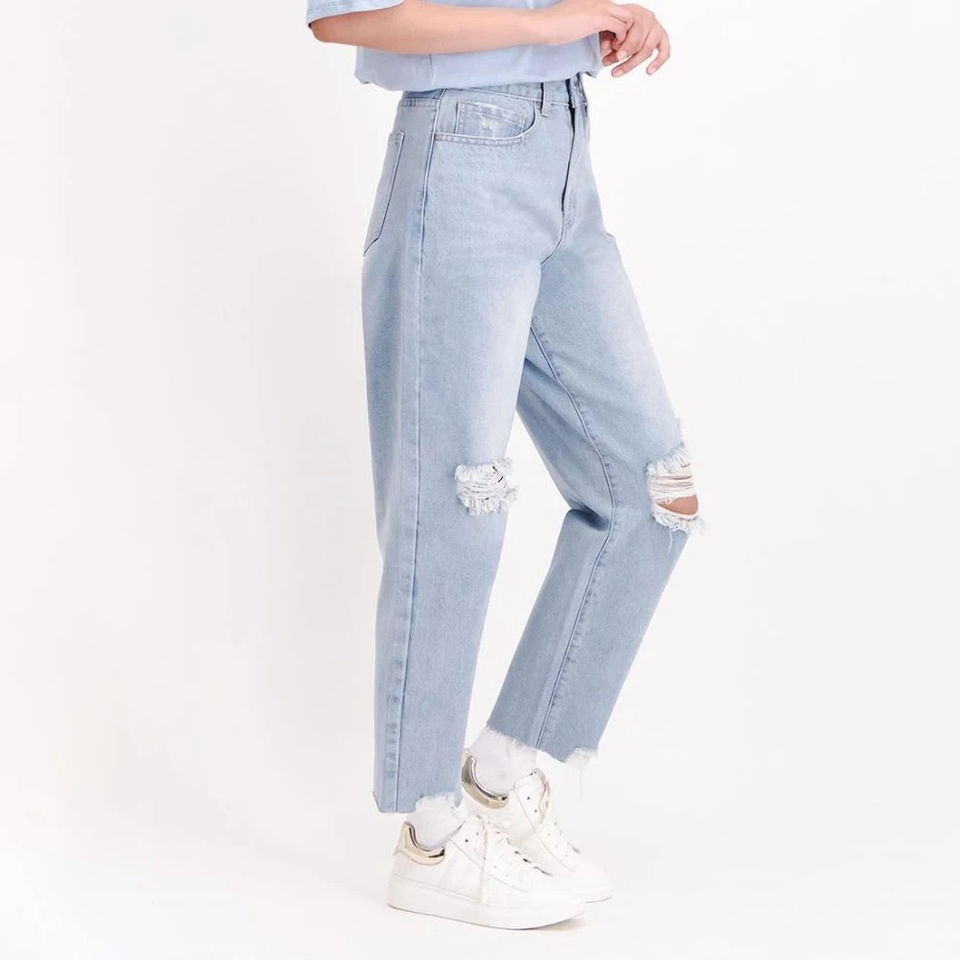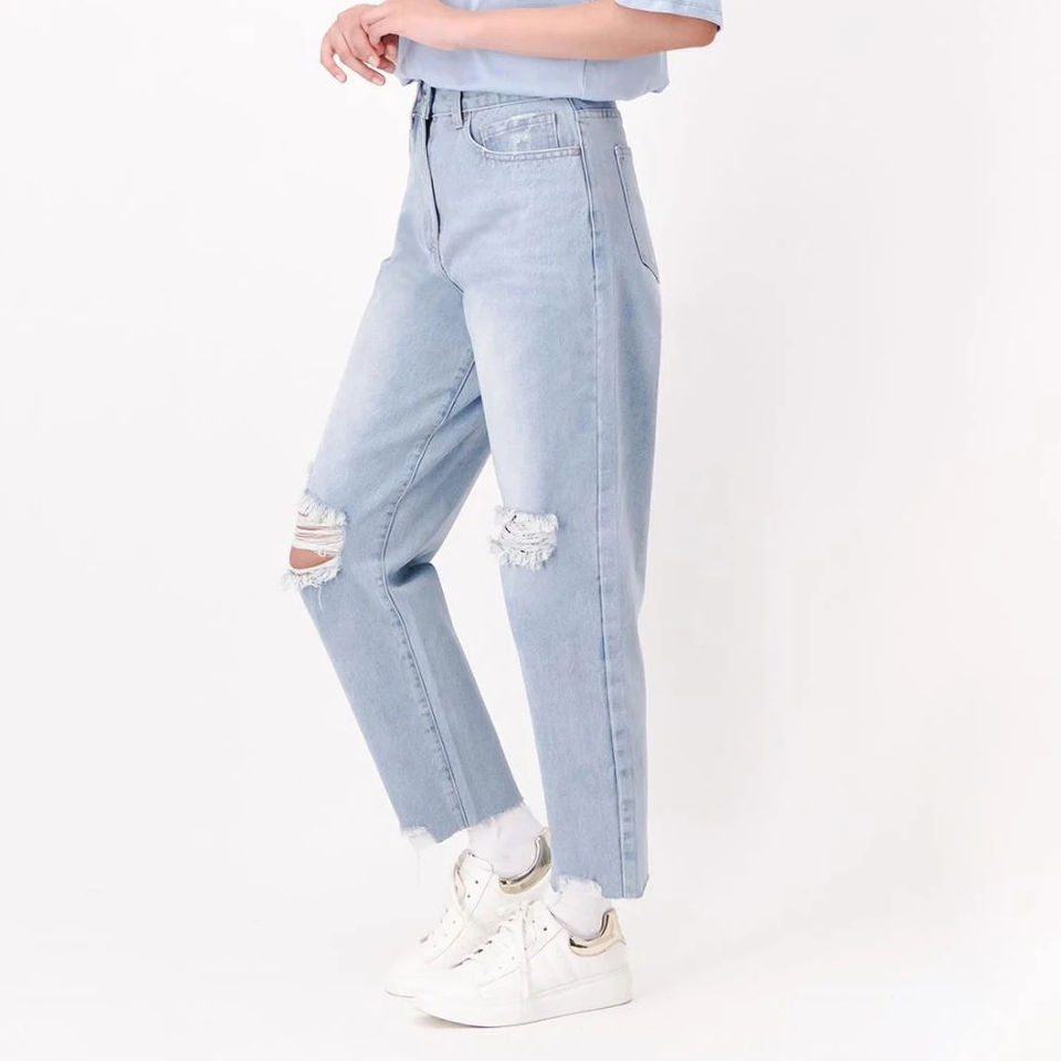 New Comfortable Baggy Distressed Women's Denim Jeans Outdoor Denim Pants Jeans Jean for Woman Distressed Stacked Denim Pants
