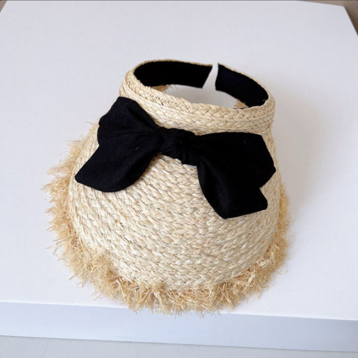 New Comfortable Half-Head Straw Hat with Attached Bow for Active Summer Days for Daily Outdoor Travel Business Use