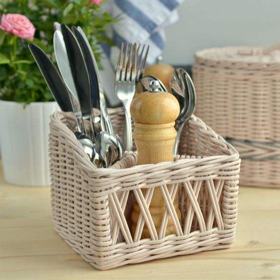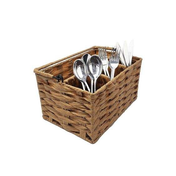 New Compartments Wicker Utensil Caddy Cutlery Holder, Handwoven Seagrass Silverware Holder Organizer With Hard Handle for Party