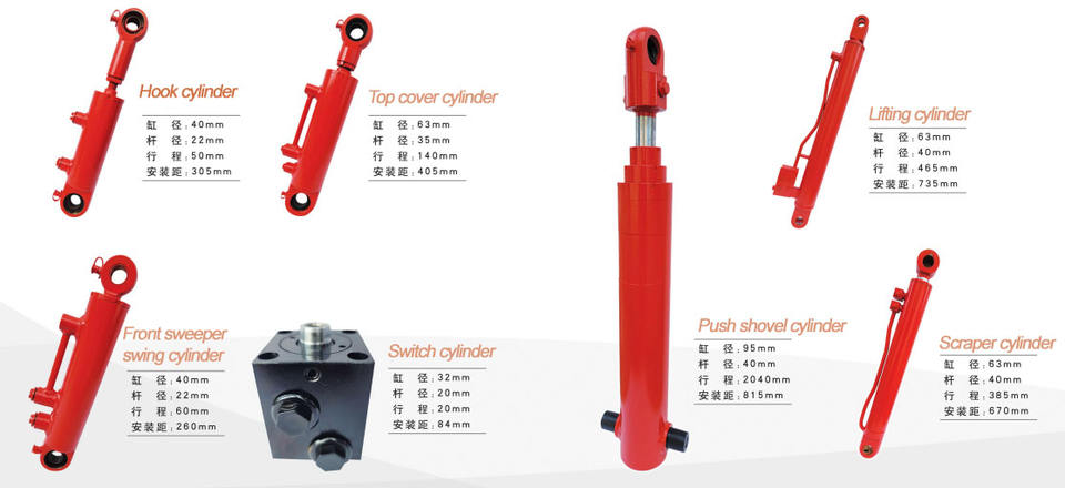 New Construction Machinery Hydraulic Cylinder with Pump Gear and Engine Front Sweeper Plate Swing Out for Sanitation Vehicle