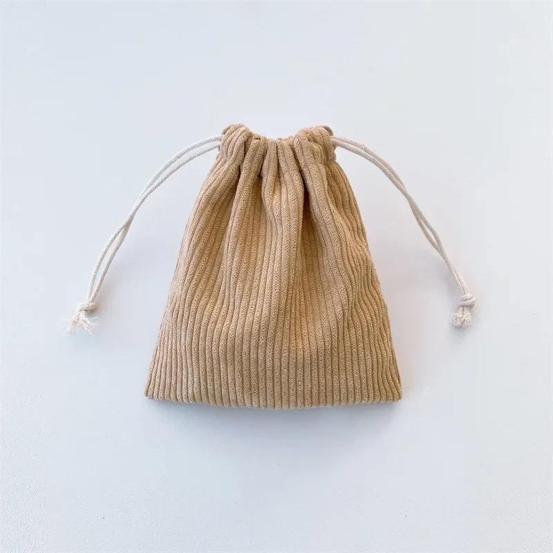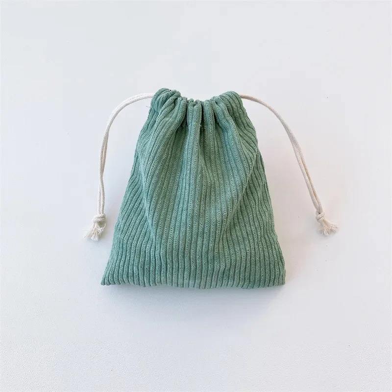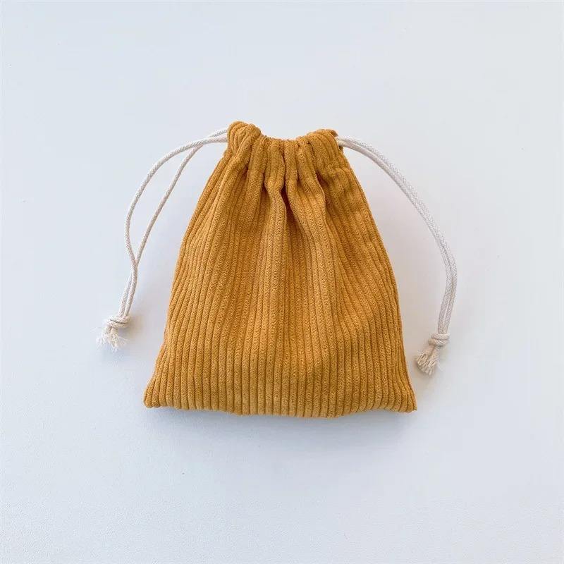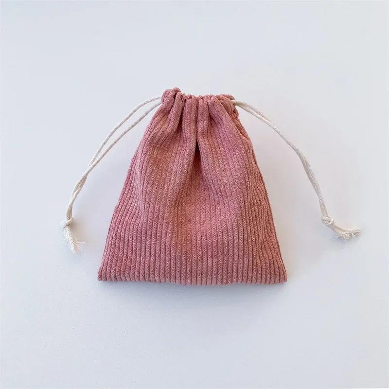 New Corduroy Storage Bag Drawstring Strap Pocket Makeup Solid Color Unisex Travel Portable Large Capacity Zero Money Polyester