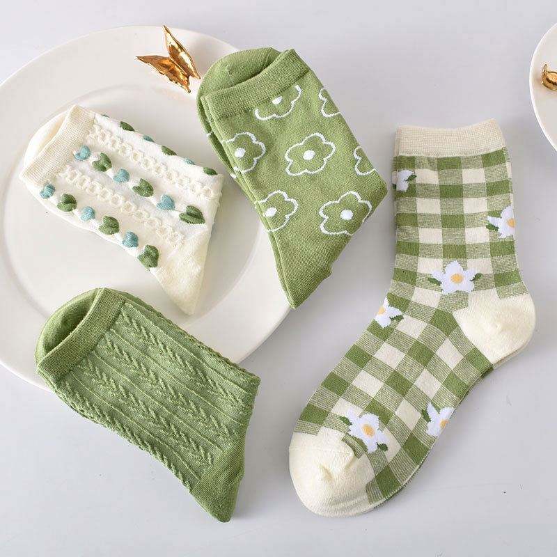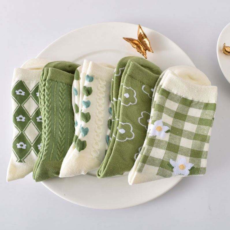 New Cotton Autumn Winter Green Socks Woman Mid Tube Moisture Wicking Socks for Women