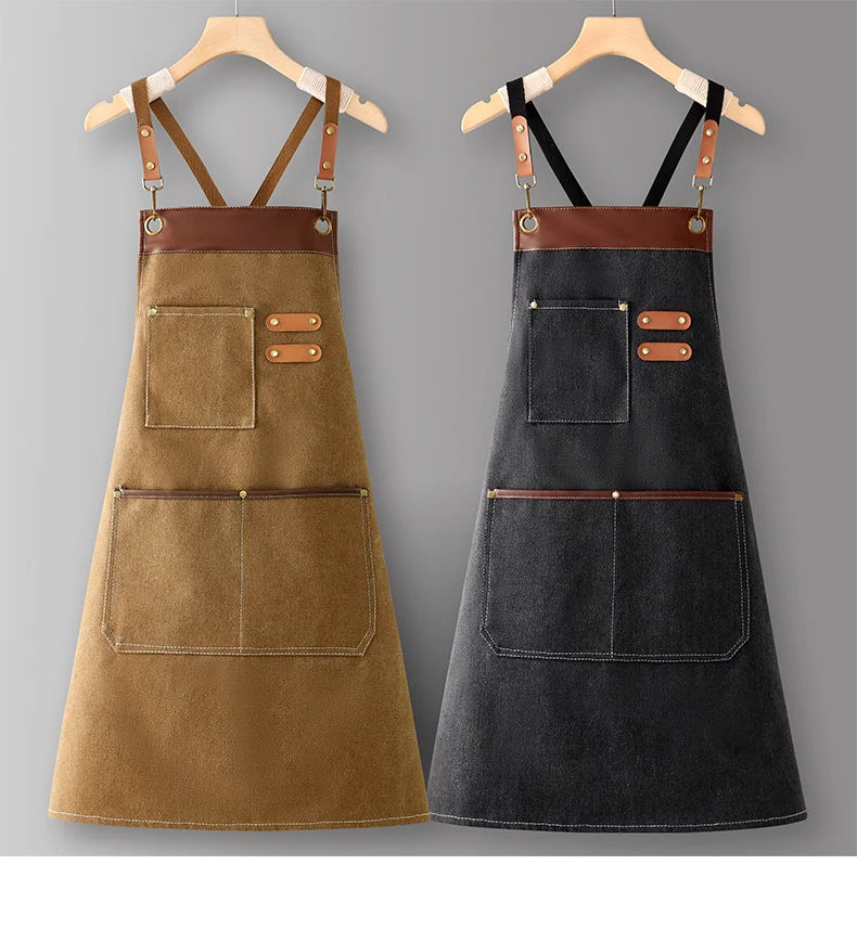 New Cotton Denim Canvas BBQ Bib Cross-Border In-Stock Workwear for Cafe Milk Tea Shop Party Occasion Sleeved Apron Manufacturer