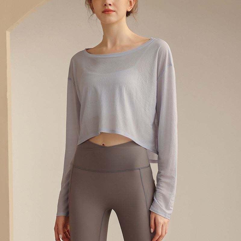 New Cotton Yoga Top Women Loose Thin Breathable Smock Long Sleeve T-shirt