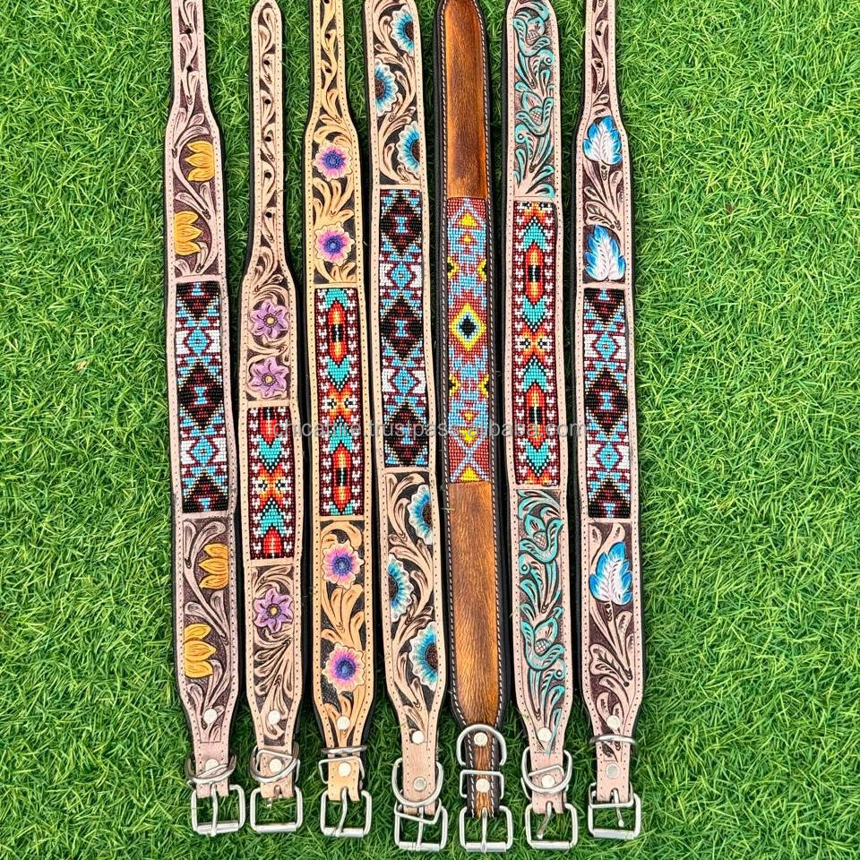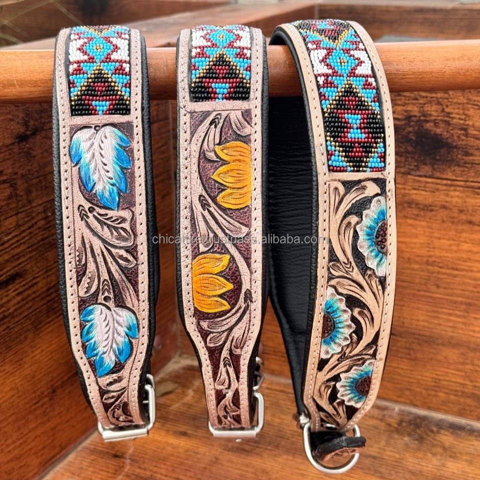 New Cowhide Tooling Carving Leather Dog Collar With Hand Painted Sunflower Tooling & Carving Top Indian Bulk Manufacturer