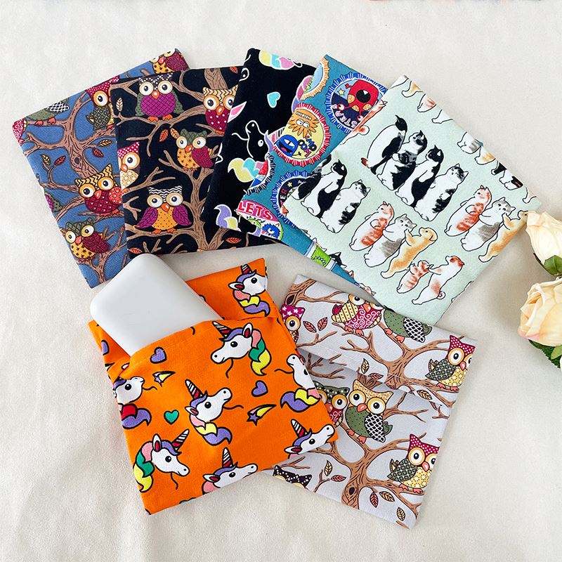 New Creative Digital Printed Eco-Friendly Cotton Jewelry Pouch Recyclable Drawstring Cover Hand Warmer Handbag 12*12cm Square