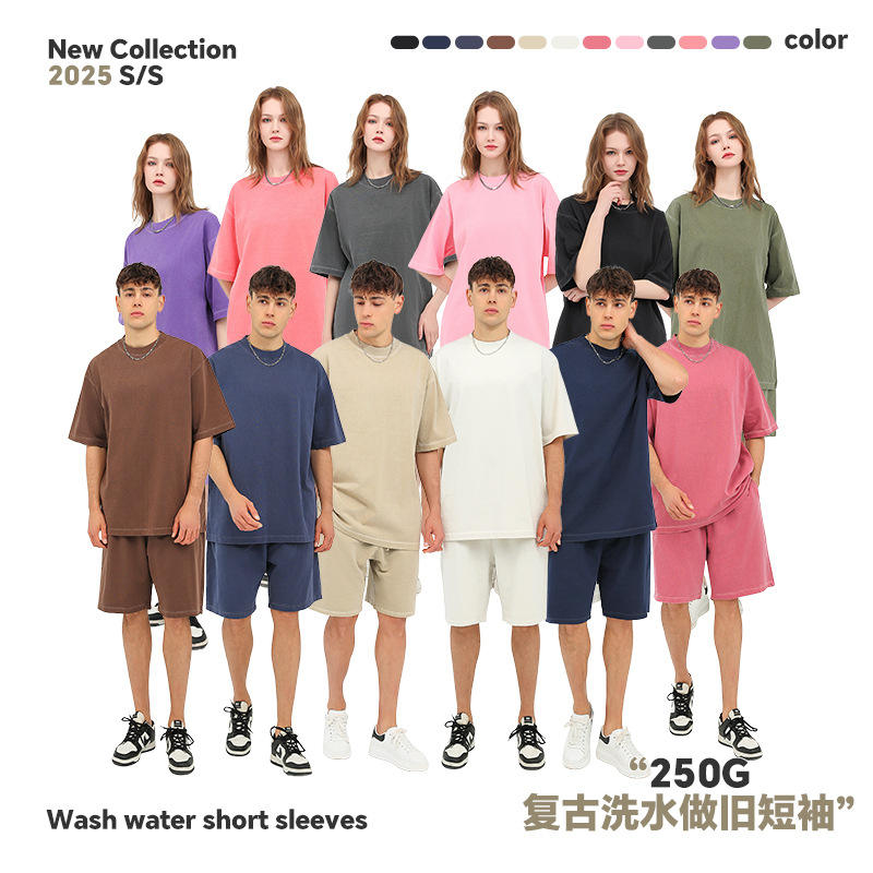 New Cross Border 250G Distressed T-Shirt For Men Heavyweight Pure Cotton Loose Fit American Retro Style Blank Design