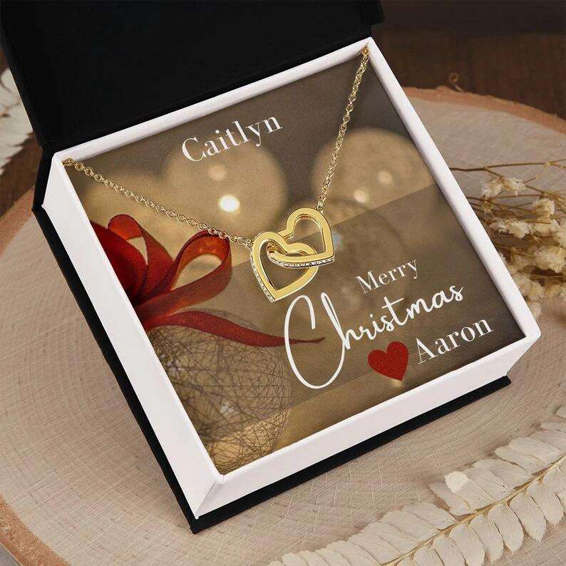 New Cross-Border Alloy Double Heart Necklace-Minimalist Personalized Heart Christmas & Birthday Gift From Wife/Mom Gift Card