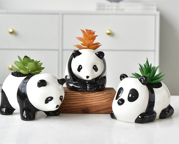 New Cross-Border E-commerce Ceramic Succulent Potted Plant White Porcelain Flowerpot Cartoon Animal Panda Tabletop Floor Vase