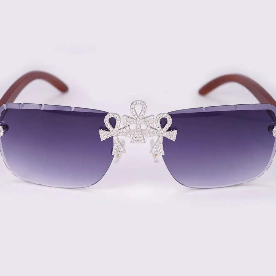 New Cross Fully Inlaid Diamond Sunglasses with Original Wood Legs and 58MM Mirror Cut Lenses Direct From Factory