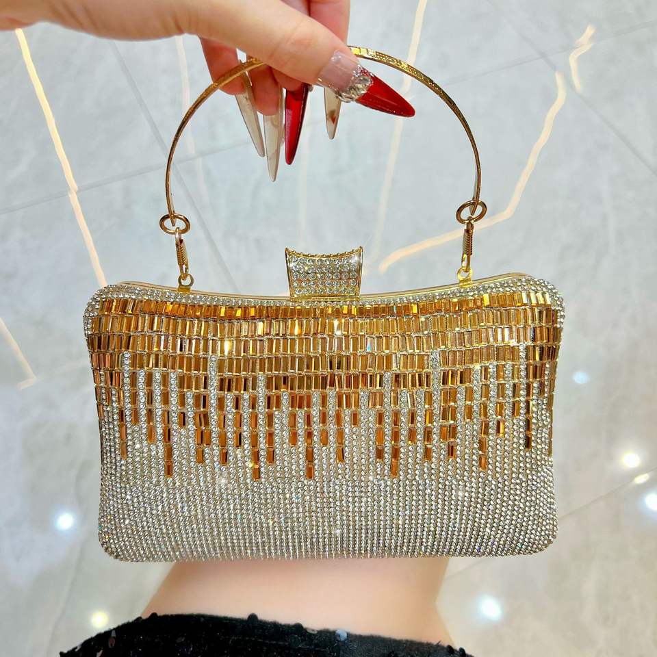 New Cross-border Polyester Rhinestone Evening Clutch Bag Ladies Celebrity Dress Shoulder Crossbody Handbag Tanjing