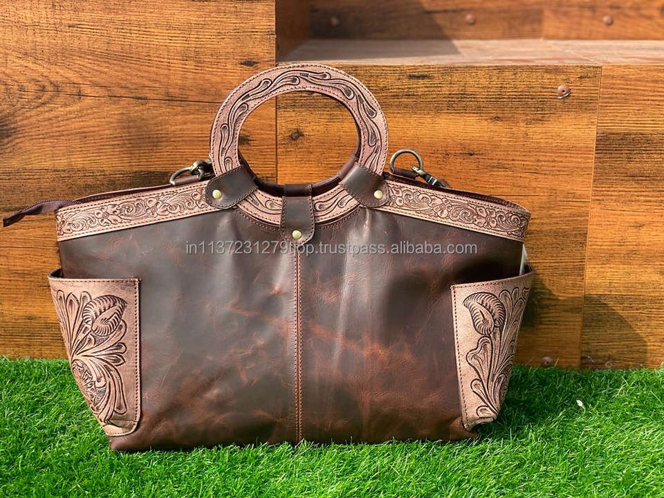New Custom Big Size Genuine Leather Handbags for Women Cowhide Tote Bag Ladies Real Tooled Leather Concealed Carry Shopping Bags