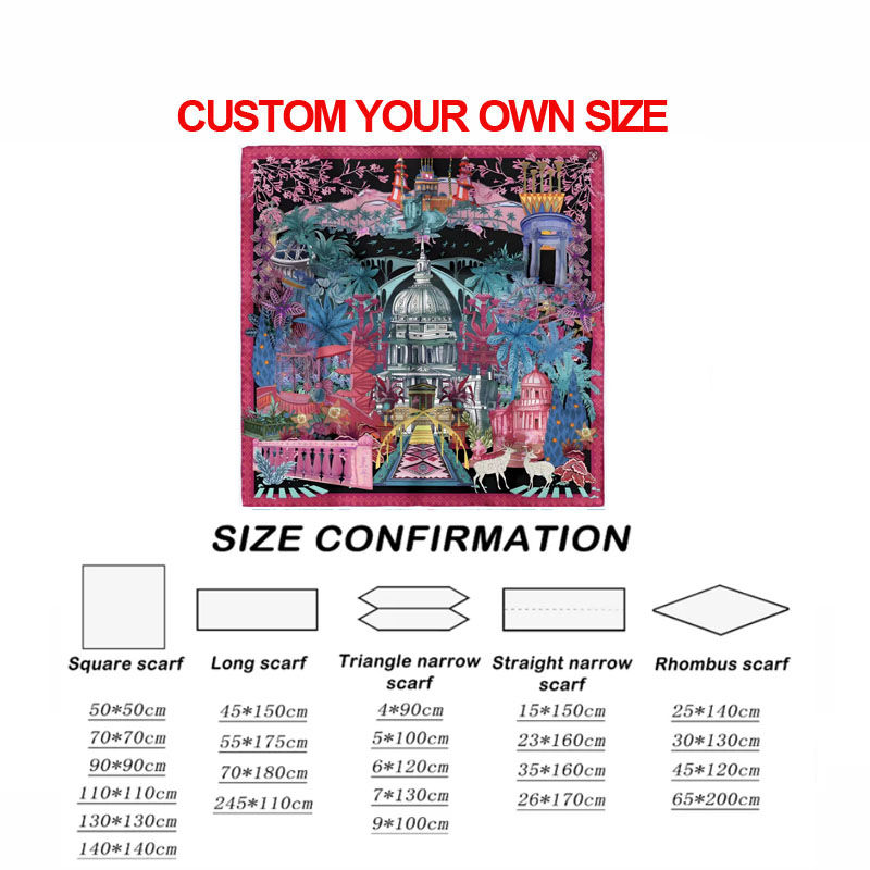 New Custom Digital Printing Square Silk Scarves 52*52cm 100% Silk Scarf Printed Logo Double-sided Print Head Satin Scarves