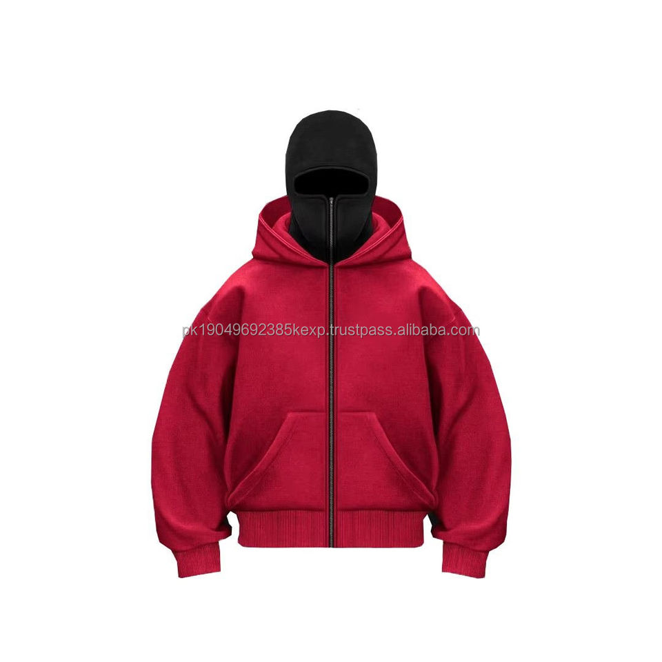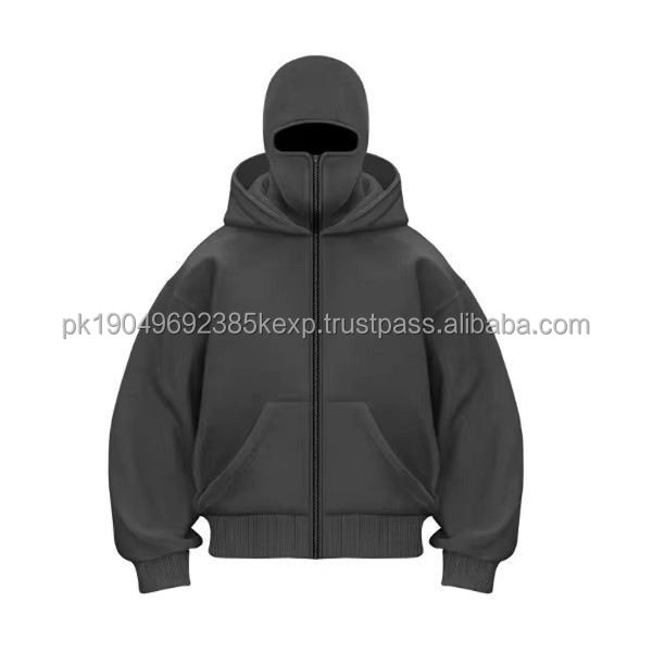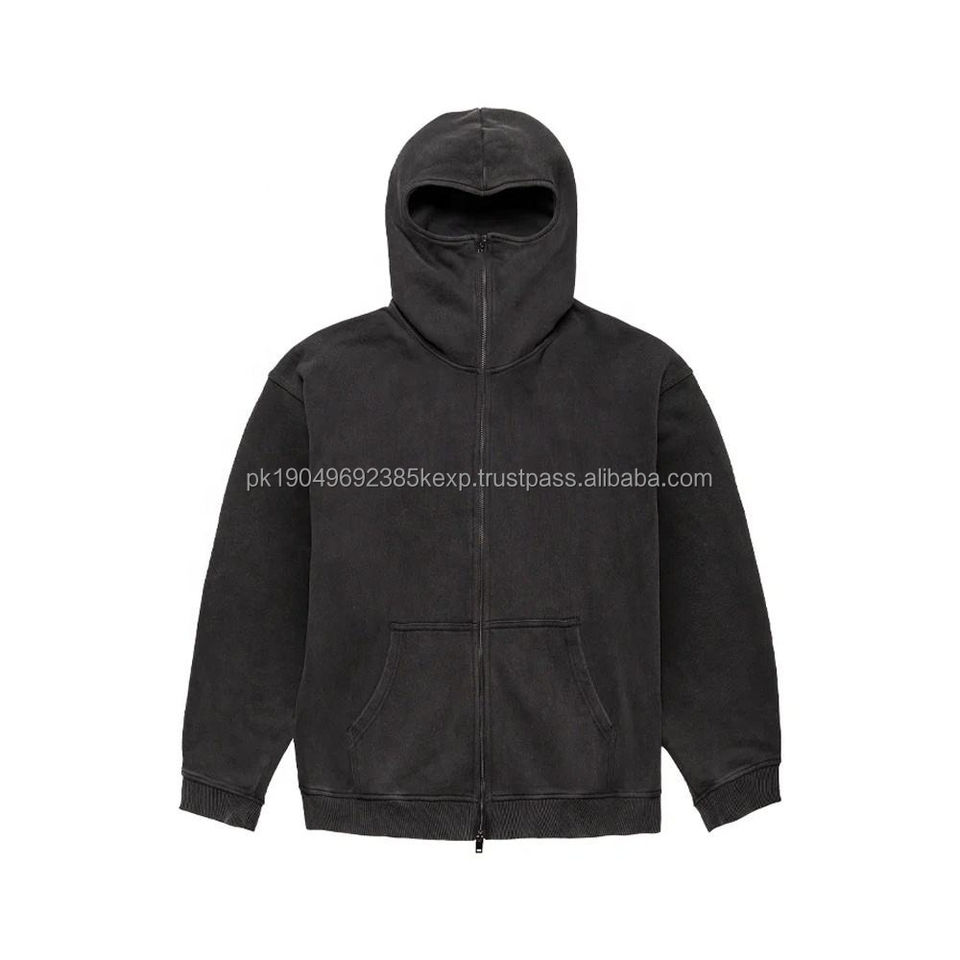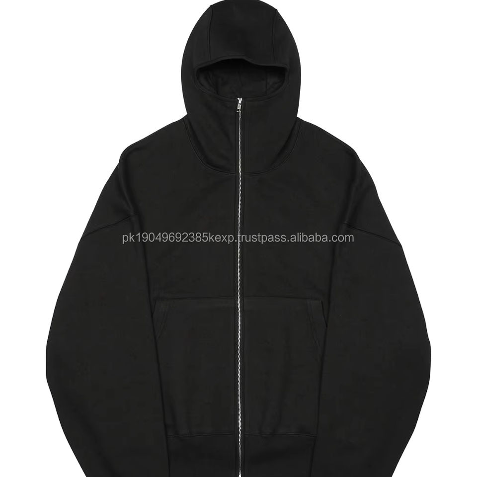 New Custom Full Zipper 100% Cotton Balaclava Hoodies Street Oversized Zip up Hoodie Drop Shoulder