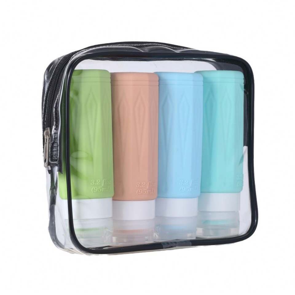 T82802 4 Pack 90ml New Custom Logo Silicone Travel Bottle Set Reusable Cosmetic Empty Bottles for Shampoo Lotion