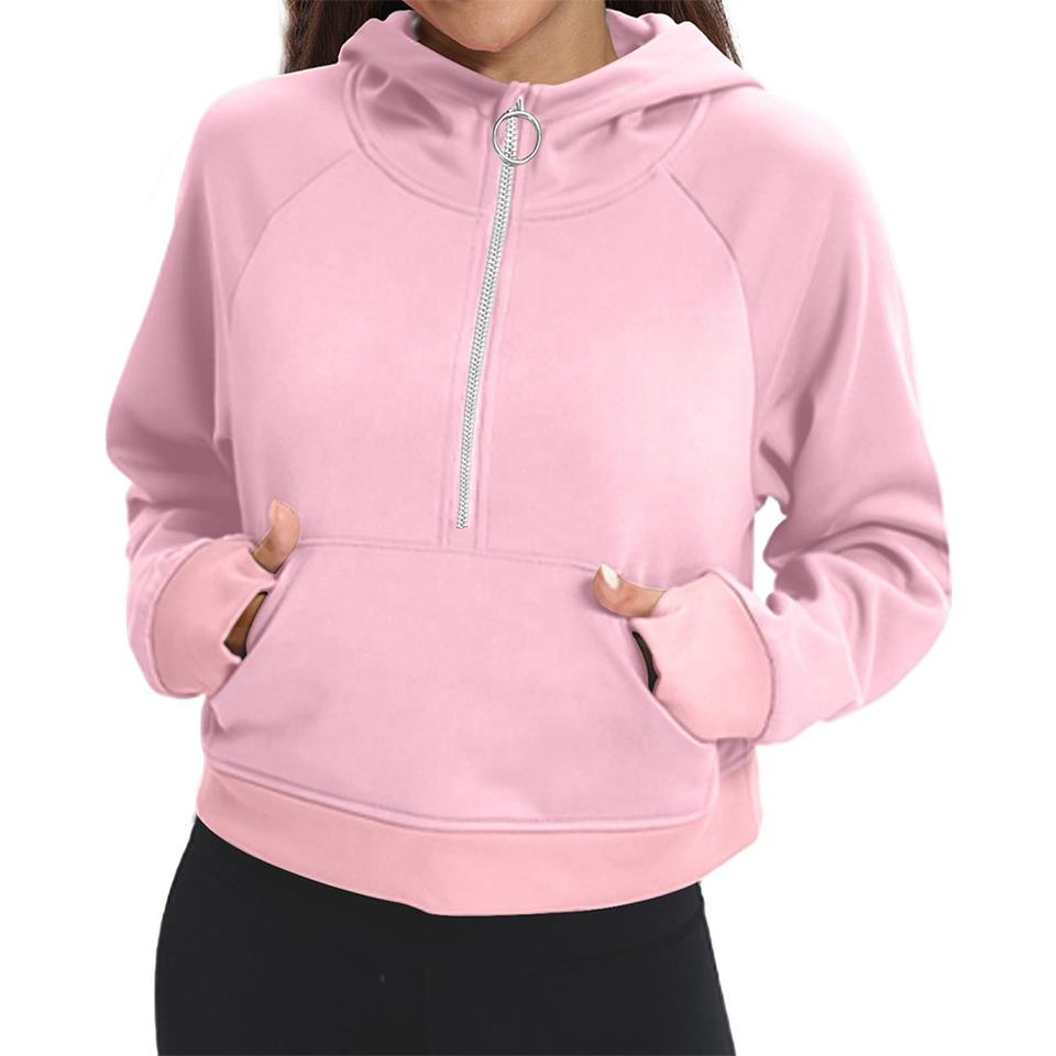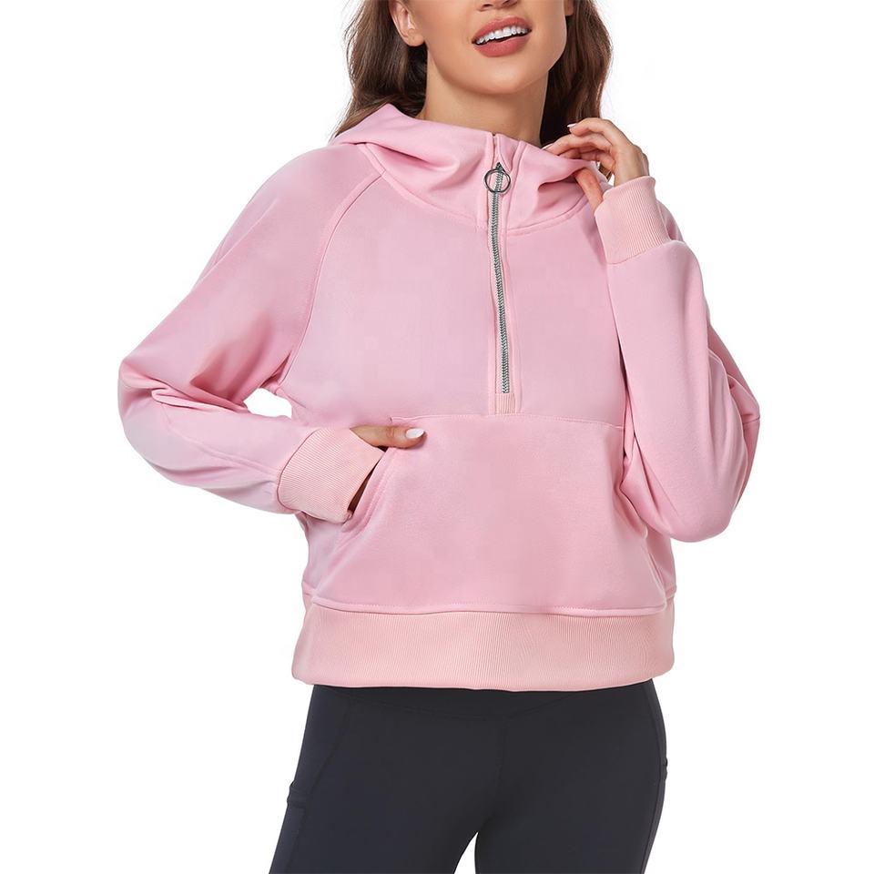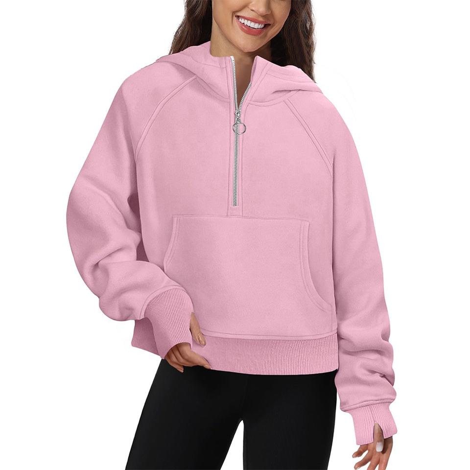 Women's Lightweight Winter Sports Half Zip Sweatshirts Multicolour Plain Jogger Fleece Hoodies with Custom Logo Loose Fitting