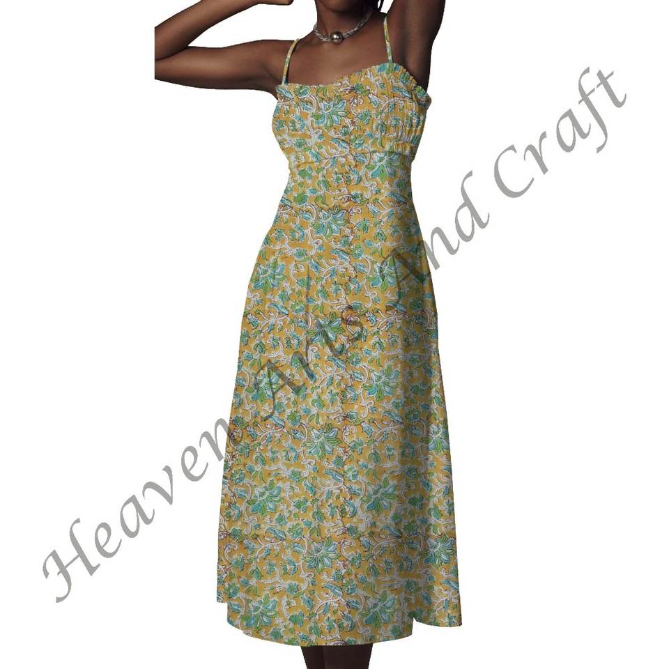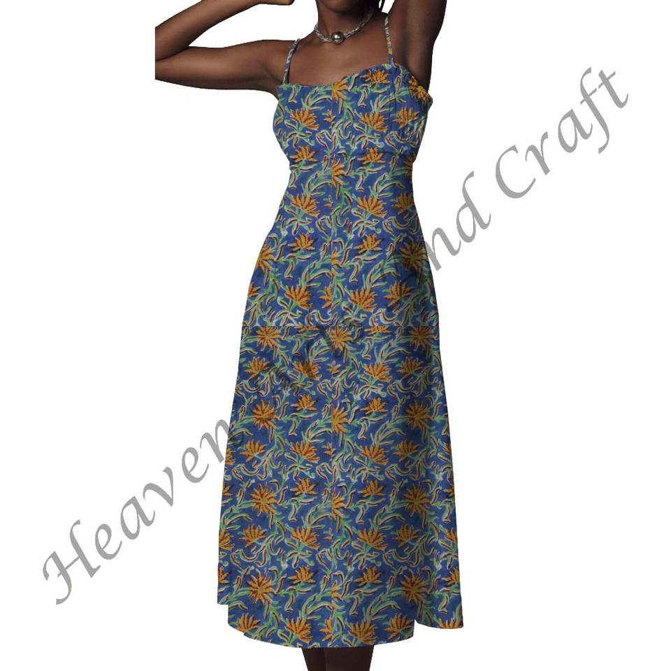 New Custom Made Block Printed Cotton Sleeveless Spaghetti Strap Dress Ideal For Women's Clothing Beautiful Block Print Cotton