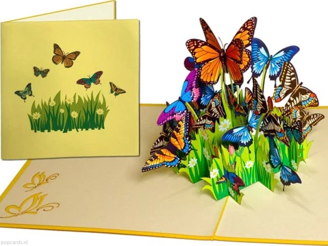 New Custom Offset Printing Design and Manufacturer Greeting Gift 3D Butterfly Pop-Up Card Made in Vietnam Paper