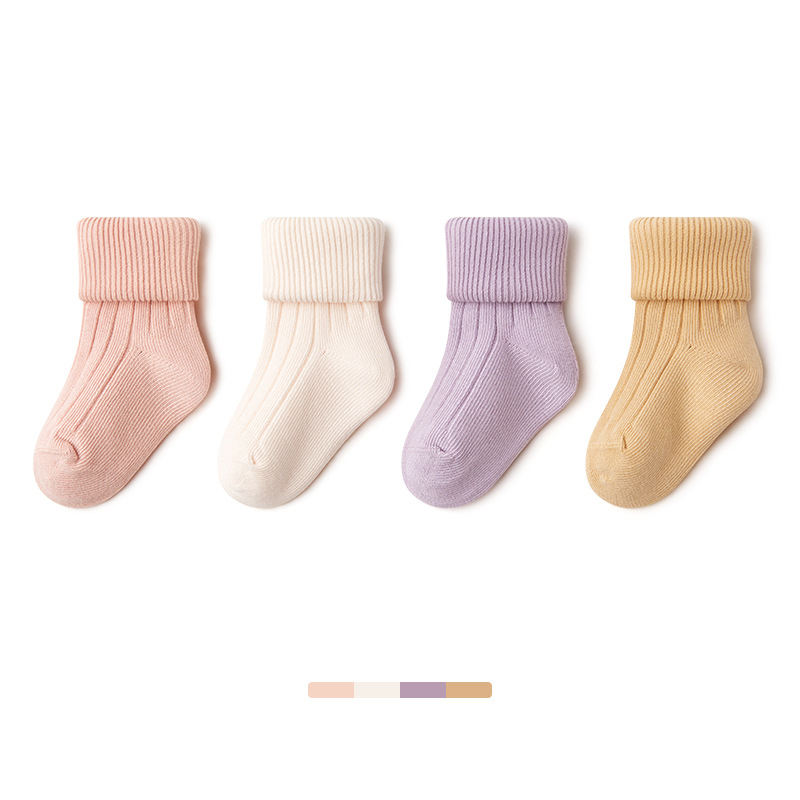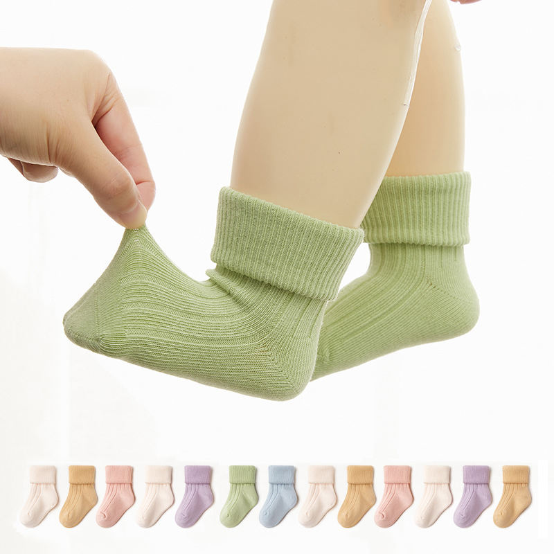 New Custom Plain Ribbed New Born Baby Socks 0-3 Years Nude Cotton Baby Socks Set Mid Tube Neutral Color Floor Ribbed Baby Socks