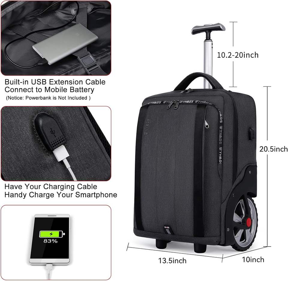 New Custom RPET Carry on Backpack with Laptop Compartment Rolling Waterproof Backpack with Wheels for Business