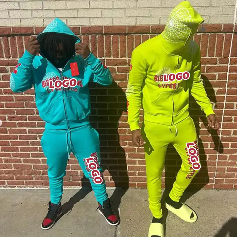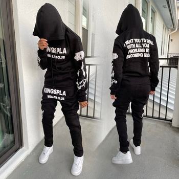 New Custom Rhinestone Tracksuit Flare Pants Set Men Two Piece Sets Crop Top Puff Print Mens Flared Sweatpants and Hoodie Sets