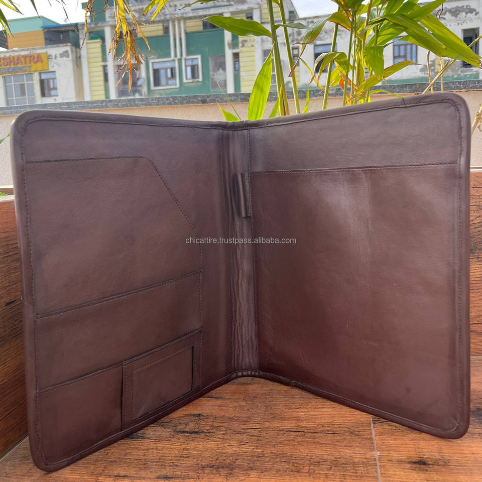 New Custom Top Quality Genuine Leather Business Planner Portfolio Cowhide File Folder A4 Document Folder Binder With Card Holder