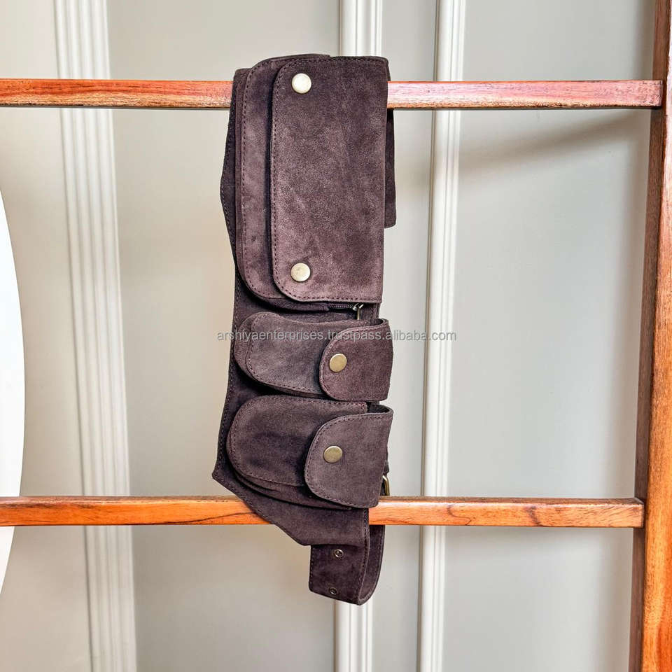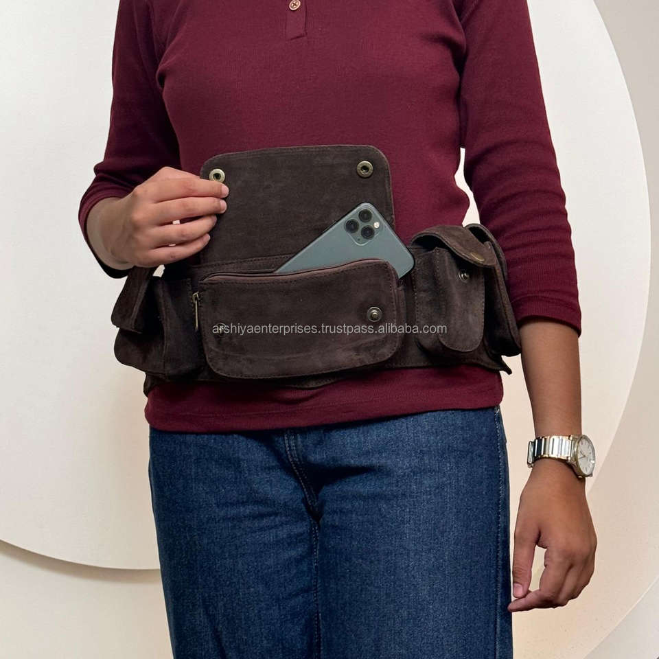 New Custom Unisex Suede Leather Waist Utility Belt with 6 Pockets Minimalist Fanny Pack-Travel Style Bum Bag