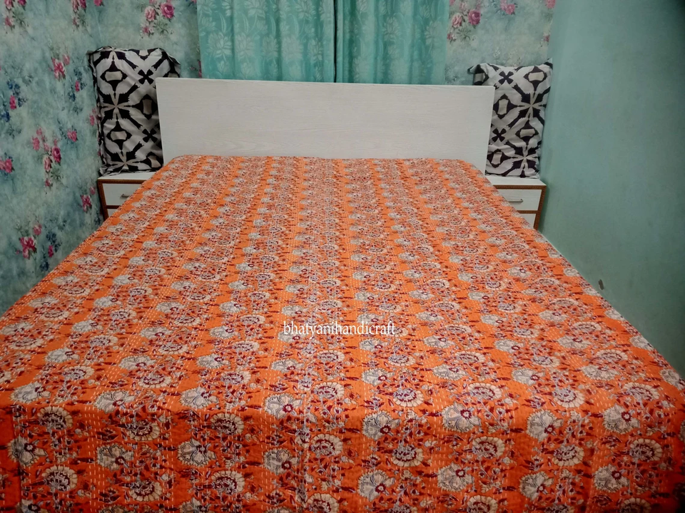 New Custom Vintage Printed Cotton Kantha Quilt Reversible Bedding Bedspread Decorative Blanket Home Hotel Handmade Eco-Friendly
