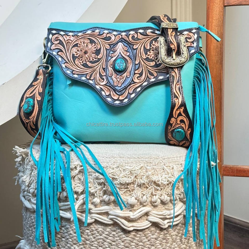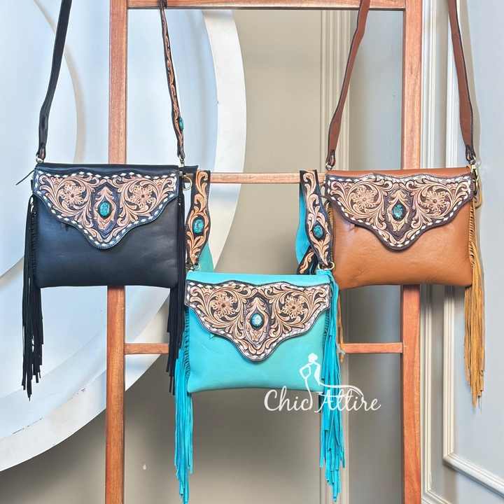 Product name:Hand Tooled Sheep Leather Fringe Crossbody Bag