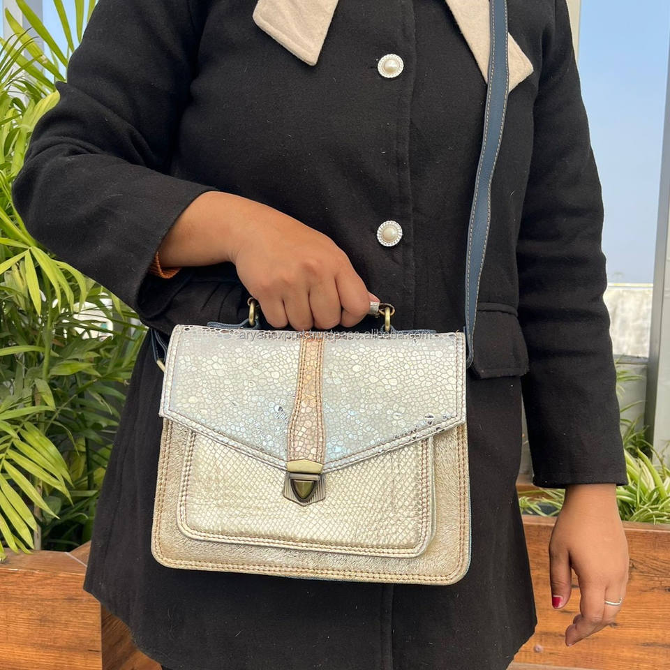 New Custom Women's Fashionable Shiny Metallic Silver Pattern Recycled Leather Handled Crossbody Bag Large Capacity Shoulder Bags