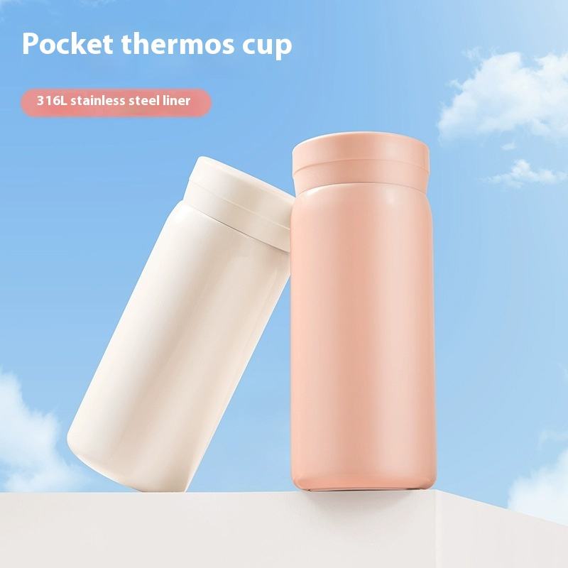 New Customizable Logo Engraving Compact 316 Stainless Steel Insulated Cup for Students Mini Pocket Water Cup with Lid